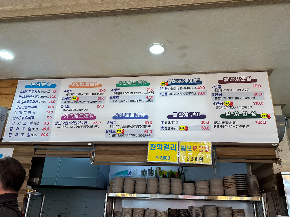 3. 가성비 좋은 메뉴: 통갈치 한 마리와 고등어구이까지 포함된 구성이 65,000원으로 합리적이었어요.